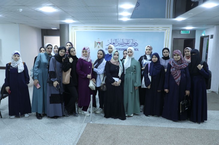استقبل ديوان الموظفين العام، في مقره بمدينة غزة ظهر /الثلاثاء/ الموافق السادس من يونيو الجاري، وفداً من طالبات قسم السكرتارية والأرشيف في جمعية اتحاد الكنائس، بهدف التعرف على أنظمة العمل المستخدمة في دوائر الديوان المختلفة.